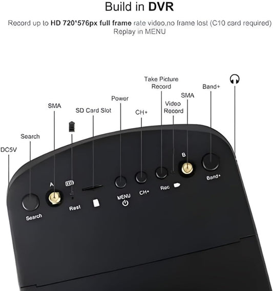 FPV Monitor for FPV Camera- 5.8Ghz 4.3" FPV Display Screen with DVR 40CH Receiver 800X480 IPS Display Built-In Battery for RC Hobby FPV Drone RC Car FPV VTX Goggles